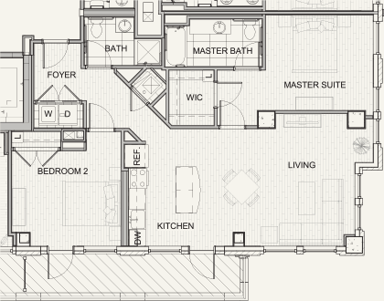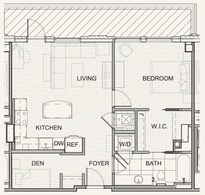 This one bedroom + den apartment is a spacious 857sf including balcony. Walk-in closet, large entry way, stainless appliances including washer & dryer are just some of the amenities.